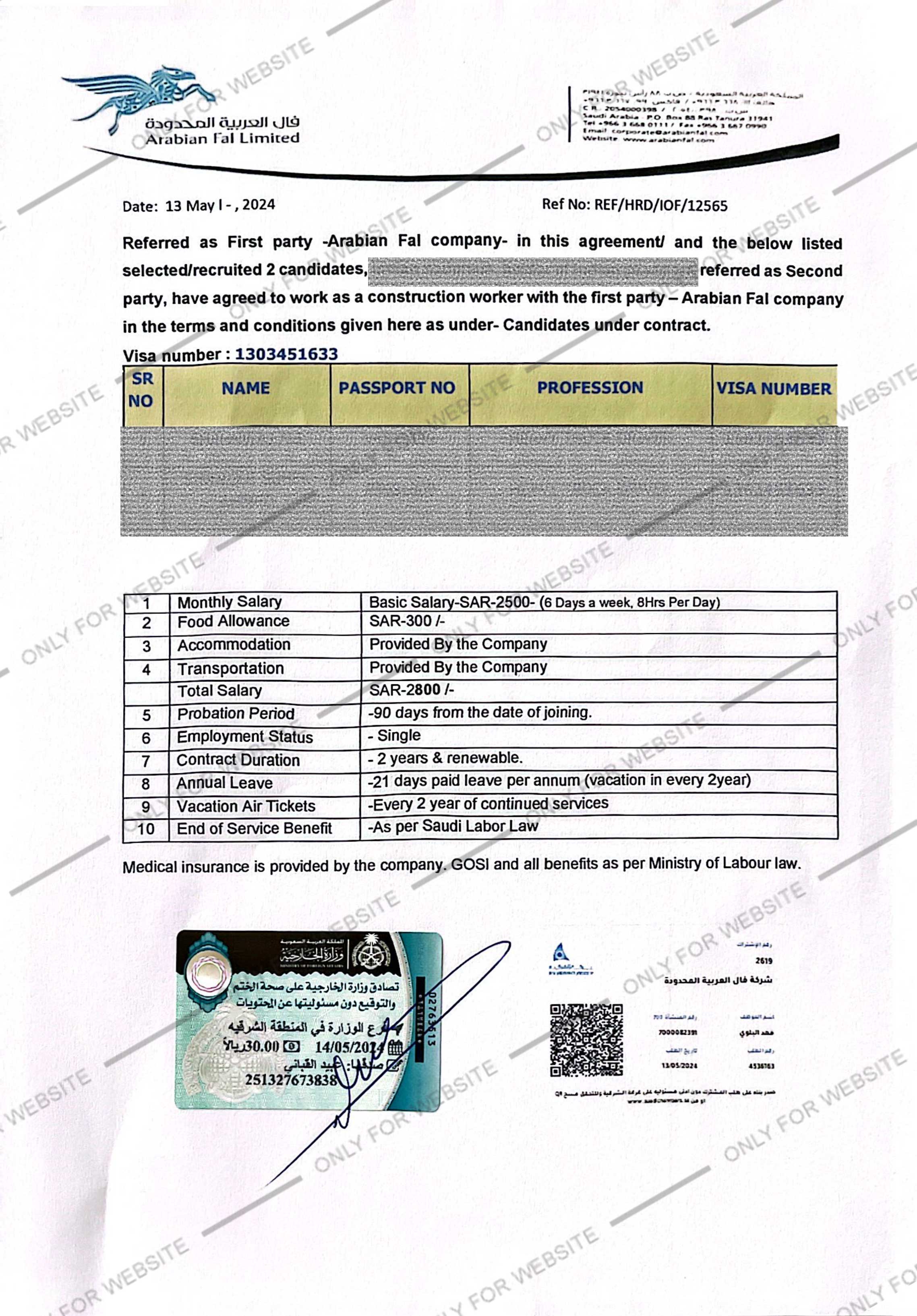 Employer/Principal Company will formally issue a demand letter in favor of the Zaria Overseas Employment Promoters.